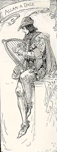 - В романе Вальтера Скотта «Айвенго» в русском переводе менестреля зовут Аллен из Лощины. Брат Тук и Робин Гуд отзываются о нём не в лучших тонах, поскольку Аллен любит выпить эля и очень часто буянит. Так, Робин узнаёт, что Аллен ограбил аббата Жорво, потребовал с того большой выкуп и угрожал повесить пленника в случае неповиновения. Впрочем, Робин и брат Тук в защиту Аллена говорят, что тот верен всегда своему слову и никогда не отступает перед своей целью. Внешность Аллена описывается в конце романа: он предстаёт как «молодцеватый юноша в зелёном кафтане с золотым шитьём» и является менестрелем отнюдь «не простого звания».