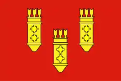 Красный цвет в средневековой геральдике считался династическим. Кроме того, он символизирует такие качества как благородство, справедливость, любовь к Богу и ближнему, мужество, храбрость, власть.