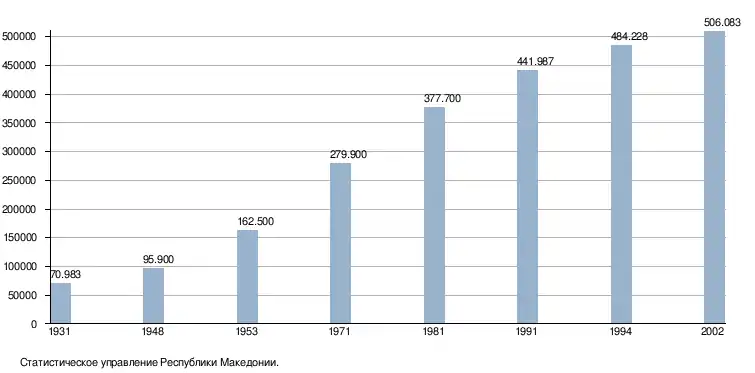 Османская перепись 1467—1468 зафиксировало присутствие всего лишь 84 албанских домохозяйств на территории всего Македонского вилайета. До конца XVIII присутствие этнических албанцев на территории современной Северной Македонии имело в целом маргинальный характер. Однако, османские власти, которые проводили довольно успешную политику исламизации албанцев, естественно стремились изменить этно-религиозный баланс в регионе в пользу мусульман с целью образовать сплошной мусульманский ареал от Босфора до Адриатики. Османский наместник албанского происхождения Абдурахман-пашa был инициатором продолжающегося расселения албаноноязычных мусульман всё дальше на восток. Агрессивные методы «зачистки» населения уже имеющихся поселений приводили к оттоку славянского населения всё дальше на восток. Небольшие группы славян, оставшихся в албаноязычном окружении подверглись албанизации. В результате, к 1931 году на территории Северной Македонии численность албанцев превысила 70 000 человек. После установления государственной границы с Албанией миграция албанцев прекратилась, однако быстрый рост албанского населения продолжался в результате высокой рождаемости: фертильность албанских женщин начала падать гораздо позднее чем у славян, но с другой стороны снижение рождаемости у албанцев Северной Македонии было более стремительным. К примеру, в 2001 году доля албанцев среди новорожденных приближалась к 40 процентам. Но уже в 2004 году доля рожениц-албанок опустилась до 31,6 процента от общего числа женщин, родивших детей в этом году[2]. Оба показателя, впрочем, остаются гораздо выше доли албанцев в населении республики, что означает рост их доли в будущем до вышеуказанных показателей.