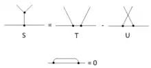 - Диаграмма китайских иероглифов - связный граф, имеющий лишь трехвалентные вершины, с выделенным ориентированным циклом (петлей Вильсона), и фиксированным циклическим порядком тройки ребер, которые выходят из каждой вершины, не лежащей на петле Вильсона. Группа китайских диаграмм порядка - свободный -модуль, порожденный -вершинными диаграммами (которые рассматриваются с точностью до естественной эквивалентности), факторизованный по подмодулю, порожденному всевозможными -соотношениями[5].