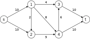 Алгоритм Диница — полиномиальный алгоритм для нахождения максимального потока в транспортной сети, предложенный в 1970 году советским (впоследствии израильским) математиком Ефимом Диницем. Временная сложность алгоритма составляет . Получить такую оценку позволяет введение понятий вспомогательной сети и блокирующего (псевдомаксимального) потока. В сетях с единичными пропускными способностями существует более сильная оценка временной сложности: .