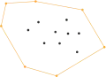 Множество точек разбивается на два подмножества, каждое из которых будет содержать одну из ломаных, соединение которых дает многоугольник выпуклой оболочки.