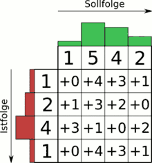 - Непрерывность (условие на длину шага): любые два смежных элемента пути , и , удовлетворяют следующим неравенствам: , . Это ограничение гарантирует, что путь трансформации передвигается на один шаг за один раз. То есть оба индекса и могут увеличиться только на 1 на каждом шаге пути.
