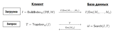 Изначально есть база данных , состоящая из файлов, некоторые данные . Из них извлекаются ключевые слова и шифруются под действием ключа клиента с помощью алгоритма . Часто требуется зашифровать и документ, но уже под действием ключа . В данном описании алгоритм шифровки документа обозначается . Тогда база данных примет вид: