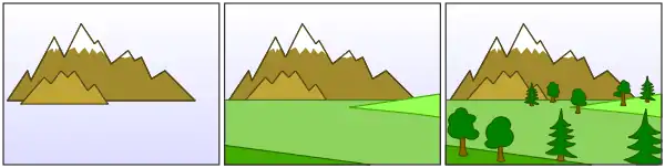 Название «алгоритм художника» относится к технике, используемой многими живописцами: сначала рисуются наиболее удалённые части сцены, потом части которые ближе. Постепенно ближние части начинают перекрывать отдалённые части более удалённых объектов. Задача программиста при реализации алгоритма художника — отсортировать все полигоны по удалённости от наблюдателя и начать выводить, начиная с более дальних.