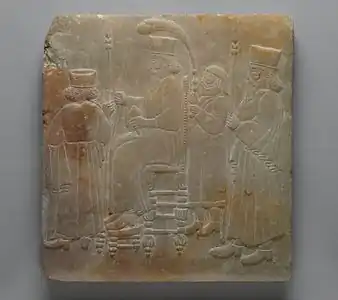 Архаизация рельефа сидящего шаха и сопровождающих лиц, Иран, Каджарский период (конец XIX века н. э., в стиле V–IV веков до н. э.). Бруклинский музей.