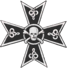 Утвержден 1 октября 1913 года. Чёрный эмалевый Мальтийский крест с белым ободком и белыми гусарскими узлами на концах. На центр наложен белой кости череп над скрещёнными костями.