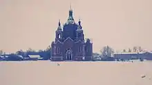 Церковь, вмещавшая до 1500 богомольцев, выполнена в традициях русской архитектуры XV века в виде крупного четырёхстолпного пятиглавого храма «под звоном» (2 главы с западной стороны здания заменяли отсутствующую колокольню); в оформлении порталов присутствуют элементы готического стиля. Архитектор и проектные материалы не установлены[3].