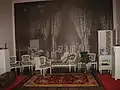 Восстановленный интерьер комнаты по фотографии дворца тех времён (на стене).