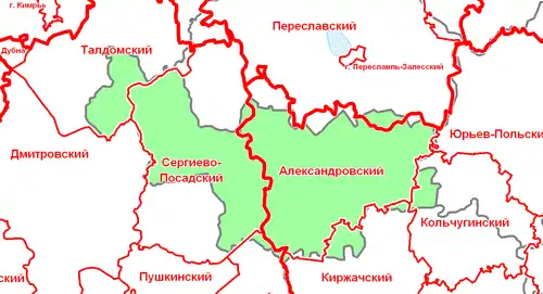 Располагался на территории современных Александровского, части Кольчугинского и Киржачского районов Владимирской области, части Сергиево-Посадского и Талдомского районов Московской области.