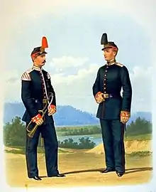 - Илл. 593. 3-е Александровское военное училище. Горнист и Юнкер (парадная форма). 22 Марта 1874. // Перемены в обмундировании и вооружении войск Российской Императорской армии с восшествия на престол Государя Императора Александра Николаевича (с дополнениями) : Составлено по Высочайшему повелению / Сост. Александр II (император российский), илл. Балашов Петр Иванович и Пиратский Карл Карлович. — СПб.: Военная типография, 1857—1881. — Тетради 1—111 : (С рисунками № 1—661). — 47×35 см.