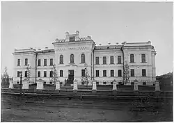 <…> учебное заведение представляет собой научно-технологическую школу наподобие Технологического института в Бостоне. Оно занимает самое большое и красивое здание в городе — солидный двухэтажный особняк из кирпича, крытый белой штукатуркой, по размерам почти вдвое больший, чем резиденция президента в Вашингтоне. Здание это было возведено и оборудовано всем необходимым на средства одного богатого и патриотически настроенного тюменского купца и обошлось ему в 85 000 долларов. Это его дар городу.