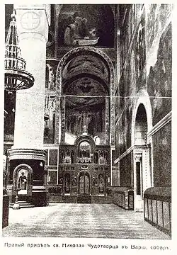 Южный предел храма был освящён 27 мая 1912 г. архиепископом Варшавским и Привисленским Николаем (Зиоровым) во имя св. Николая.
