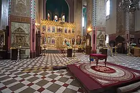 По первоначальному проекту Михаила Преображенского для собора планировался мраморный иконостас, но в процессе строительства он был заменён позолоченным деревянным, так как он более подходил к типу собора, построенного по образцу московских храмов XVII века.