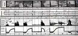 Мы с С. С. Прокофьевым всегда долго торгуемся, кто первый: писать ли музыку по несмонтированным кускам изображения — с тем, чтобы, исходя из неё, строить монтаж, — или, законченно смонтировав сцену, под неё писать музыку. И это потому, что на долю первого выпадает основная творческая трудность: сочинить ритмический ход сцены! Второму уже легко. На его долю остается возвести адекватное здание из средств, возможностей и элементов своей области. Конечно, лёгкость и здесь весьма относительная.