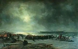 На одном из вечеров у цесаревича получено было известие о крушении у берегов Дании фрегата «Александр Невский», на котором плавал В.Кн. Алексей Александрович. Фрегат раскатало вдребезги, но Его Высочество благополучно спасся от гибели. Событие это по приказанию Государя императора я написал в двух картинах, составляющих собственность генерал-адмирала. Это — «Выход Великого Князя из катера в бурунах» и «Благодарственный молебен вечером после крушения на берегу». Для этого я отправился в Данию, где написал этюды местности и бурунов, а фрегат уже видел по частям, выброшенный на берег. На обратном пути я заехал в Копенгаген, был принят королём и королевой, завтракал у них, получил письма и некоторые посылки, с которыми и вернулся в Петербург