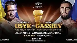 Александр Усик против Мурата Гассиева — боксёрский 12-раундовый поединок в первом тяжёлом весе, который состоялся 21 июля 2018 года в спортивном комплексе «Олимпийский» в Москве. Поединок стал финалом 1-й боксёрской супер серии в тяжёлом весе. На кону стояли чемпионские пояса по версиям WBC и WBO, которые принадлежали Усику, IBF и WBA super, которые принадлежали Гассиеву, кубок Мохаммеда Али, который стал призом победителю, а также вакантные титулы Абсолютного чемпиона мира по боксу в первом тяжёлом весе, чемпиона мира по версиям журналов The Ring и Transnational Boxing Rankings Board и титул Линейного чемпиона.