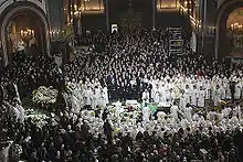 - По данным ГУВД Москвы, более ста тысяч человек пришли проститься со святейшим патриархом Алексием. Катехизис.ру.