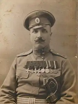 21 июля 1917 произведён в чин штабс-капитана. В сентябре 1917 г. «по болезни и ранениям» отправлен в отставку[1].