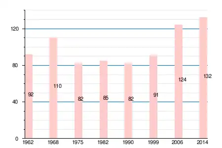 | 1962 | 1968 | 1975 | 1982 | 1990 | 1999 | 2006 | 2011 | 2013 | 2014 |