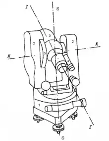 Схема современного теодолита. Алидада — вращаемая средняя часть.