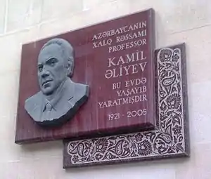 - Xalq rəssamı Kamil Əliyevin yaşadığı evin qarşısında barelyefi hazırlanıb (азерб.) // arxiv.az. — 2007. Архивировано 23 июля 2015 года.
