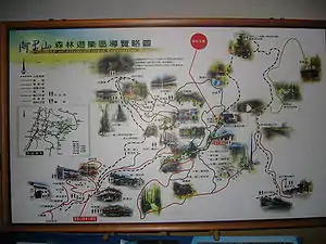 Когда японцы заняли Тайвань, японские экспедиции нашли высококачественный кипарис (檜木). Для развития лесопромышленности были построены узкоколейки. Часть этих дорог была переоборудована позднее для туристов (Алишаньская Лесная железная дорога). Японцы планировали превратить область в национальный парк (新高阿里山国立公園).
