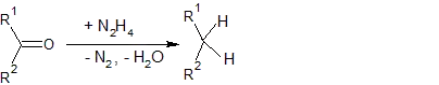 Реакцию проводят в избытке гидразина в высококипящем растворителе в присутствии KOH[15].