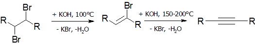 Реакция дегидрогалогенирования проводят действием сильного основания на дигалогеналканы: