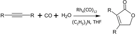 По аналогии с реакциями алкенов, алкины вступают в реакцию восстановительного карбоксилирования.