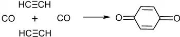 Циклообразование в присутствии оксида углерода(II) приводит к получению бензохинона[13]: