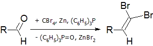 - Реакция Кори-Фукса — синтез алкинов из альдегидов[17]: