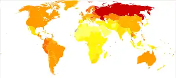 Уже в XIX веке считалось, что с повышением благосостояния населения начинает расти и алкоголизм[12]. Всемирная организация здравоохранения считает, что тенденция заболеваемости алкоголизмом в мире постоянно растёт: если в 2000 году больных алкоголизмом в мире было около 140 миллионов, то в 2010 году — уже около 208 миллионов: при такой тенденции к 2050 году число больных алкоголизмом в мире может превысить 500 миллионов человек из 9,5 млрд населения[13][14][15], то есть 1 из 19.