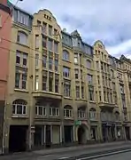 Образцы вертикального модерна: дома №18 (1906) и №35 (1909) на ул. Лачплеша, №19 (1908) на ул. Стабу, № 57 (1908) на ул. Бривибас[2].