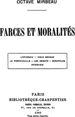 - Октав Мирбо, Farces et moralités.