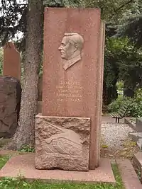 Похоронен в Москве на Новодевичьем кладбище (1 участок, 43 ряд, 30 могила)[5], недалеко от могилы своей сестры Надежды, похороненной в 1932 году. На его могиле стоит памятник работы скульптора Сергея Меркурова с барельефом танка. В 1974 году рядом была похоронена жена Евгения Александровна.[4]