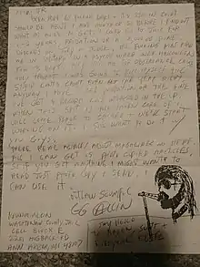 Во время своего заключения Аллин писал книгу, названную The GG Allin Manifesto[16].