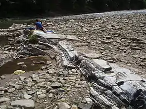- во время отложения в русле и прирусловых валах (барах) обломочного материала, размытого водным потоком выше по течению;