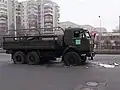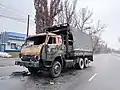 Автомобиль КАМАЗ Национальной гвардии МВД РК, повреждённый протестующими