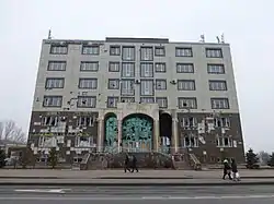 Сгоревшее здание Площадь Республики 13, в котором находились студии нескольких телекомпаний