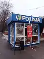 Разбитый протестующими модульный пункт полиции