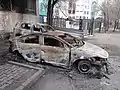 Сожжёная протестующими полицейская машина Hyundai Elantra