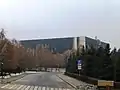 Сгоревшее здание городского акимата Алматы. Вид с восточной стороны
