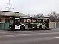 Сожжённый протестующими автобус DAEWOO Национальной гвардии МВД РК