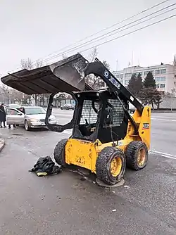 Приблизительно в 14:00 вооружёнными боевиками был начат захват здания городского акимата и прилегающего к нему здания бывшей резиденции президента, находящегося южнее по проспекту Назарбаева[34]. К 14:30 штурмующие вошли в здание акимата[35].