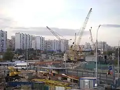 Работы по возведению станционного комплекса велись открытым способом одновременно со строительством тоннелей. В августе 2011 года началось сооружение «стены в грунте»; в октябре — выемка грунта из котлована. В ноябре 2011 года приступили к бетонированию лотка платформенной части. В декабре 2012 года СМУ-3 «Мосметростроя» приступило к наиболее сложной части работ — возведению 162-метрового сводчатого покрытия из монолитного железобетона над платформенным участком станции. Бетонирование велось участками (захватками) по 9 метров с помощью передвижной опалубки, разработанной и изготовленной российской опалубочной компанией «СТАЛФОРМ Инжиниринг». Опалубочная система состояла из основания, оснащенного механизмами для подъёма и передвижения, и опалубочной секции, повторяющей проектную геометрию свода. В процессе выполнения работ с помощью гидравлического подъемного механизма сначала устанавливалась в проектное положение центральная секция опалубки, затем торцевые секции. После выстаивания бетона конструкция в обратном порядке возвращалась в транспортное положение и перемещалась на следующий участок бетонирования.