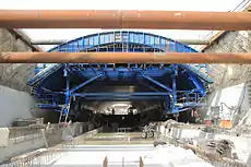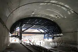 Запроектированный архитекторами гладкий, без кессонов эллипсоидный свод предъявлял высокие требования к качеству бетонируемой поверхности. Поэтому особое внимание было уделено формообразующей части опалубочной конструкции. Она была изготовлена из высококачественной ламинированной фанеры, стабильно закрепленной на каркасе из алюминиевых балок MEGAFORM Al. Последний, 18-й участок свода был забетонирован бригадой Александра Ларина из СМУ-3 «Метростроя» точно в соответствии с графиком — в июле 2012 года. В августе строители приступили к отделочным работам и обратной засыпке[34]. В декабре 2012 были завершены все архитектурно-отделочные и инженерные работы, тестирование и пусконаладка всех систем.