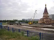 | Информационный щит о строительстве станции | Недалеко от северного выхода | Недалеко от храма и южного выхода |