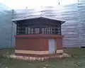 Информационный стенд у строящегося входа на станцию «Алмалы» (вид со стороны ул. Панфилова) (октябрь 2008 года)