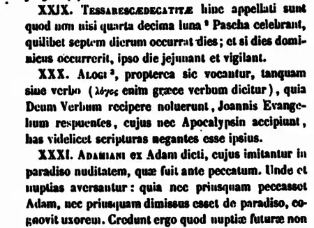 - Augustinus. «De Haeresibus ad Quodvultdeum Liber Unus».